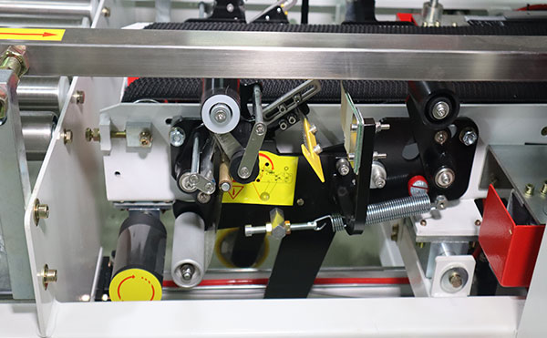 其次,封箱機(jī)的機(jī)械調(diào)整部件也會(huì)影響膠帶的走向。封箱機(jī)的壓帶裝置和切刀位置如果調(diào)整不當(dāng),可能會(huì)導(dǎo)致膠帶在封箱過(guò)程中偏離預(yù)定軌道。檢查壓帶裝置是否牢固,切刀位置是否準(zhǔn)確,以及機(jī)械部件是否有松動(dòng)或損壞,這些都可以有效避免膠帶跑偏的問(wèn)題。